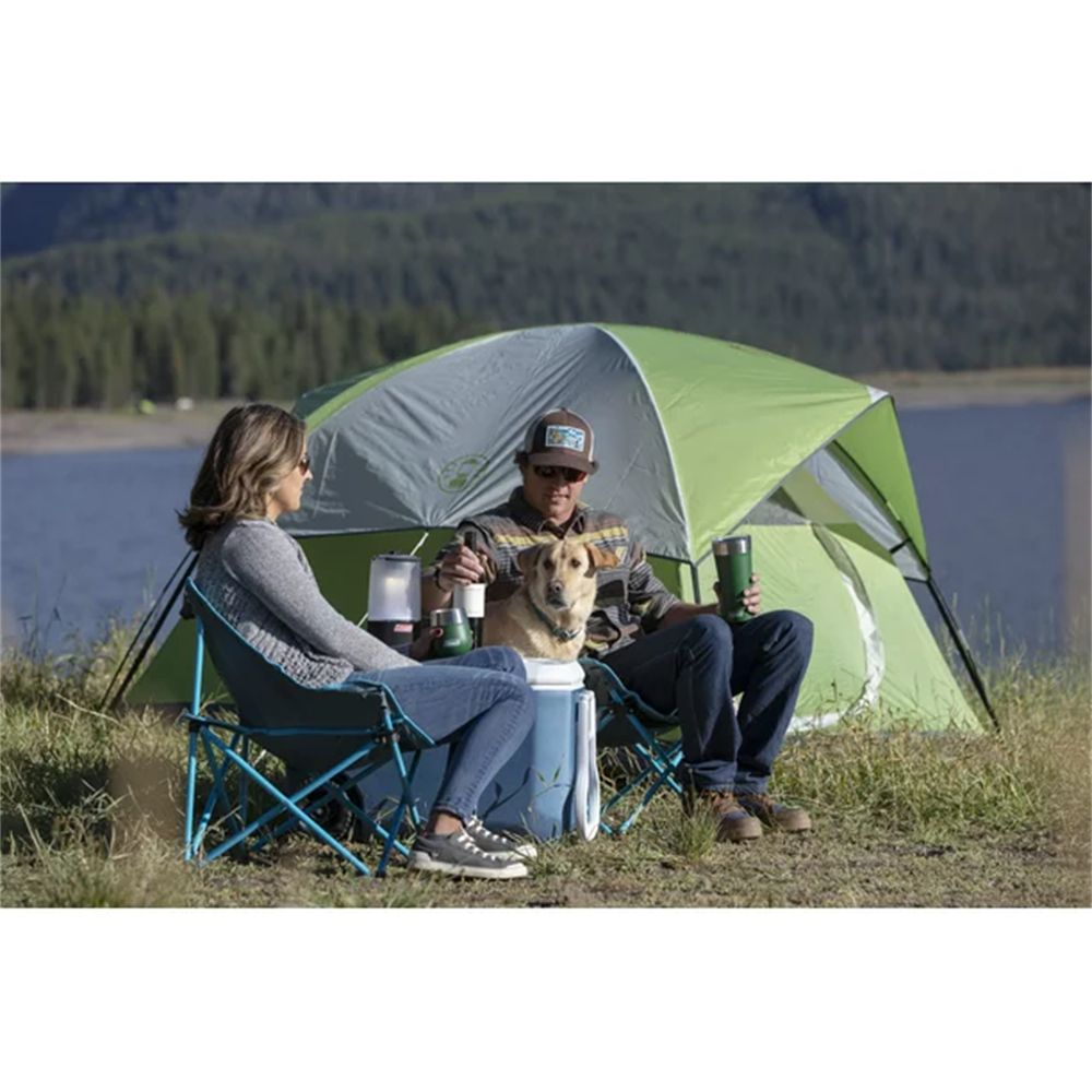 The 4-Person Dome Tent has an exclusive WeatherTec™ system that keeps you dry. You can also control airflow in this tent with adjustable Variflo™ ventilation. This camping dome tent is easy to transport and simple to set up. It is ideal for weekend car campers; short backpacking hikes or first time campers. This Coleman dome tent comes with a durable carry bag with separate storage bags for tents; poles and stakes. It also includes a rain fly; a privacy vent window and a Cool-Air port. It uses shock-corded poles with continuous pole sleeves for a smooth setup. The stable tent has a pin and ring design and InstaClip™ attachments. Inside there is an interior gear pocket and an electrical access port for added convenience. The easy-to-follow instructions are sewn into the carry bag