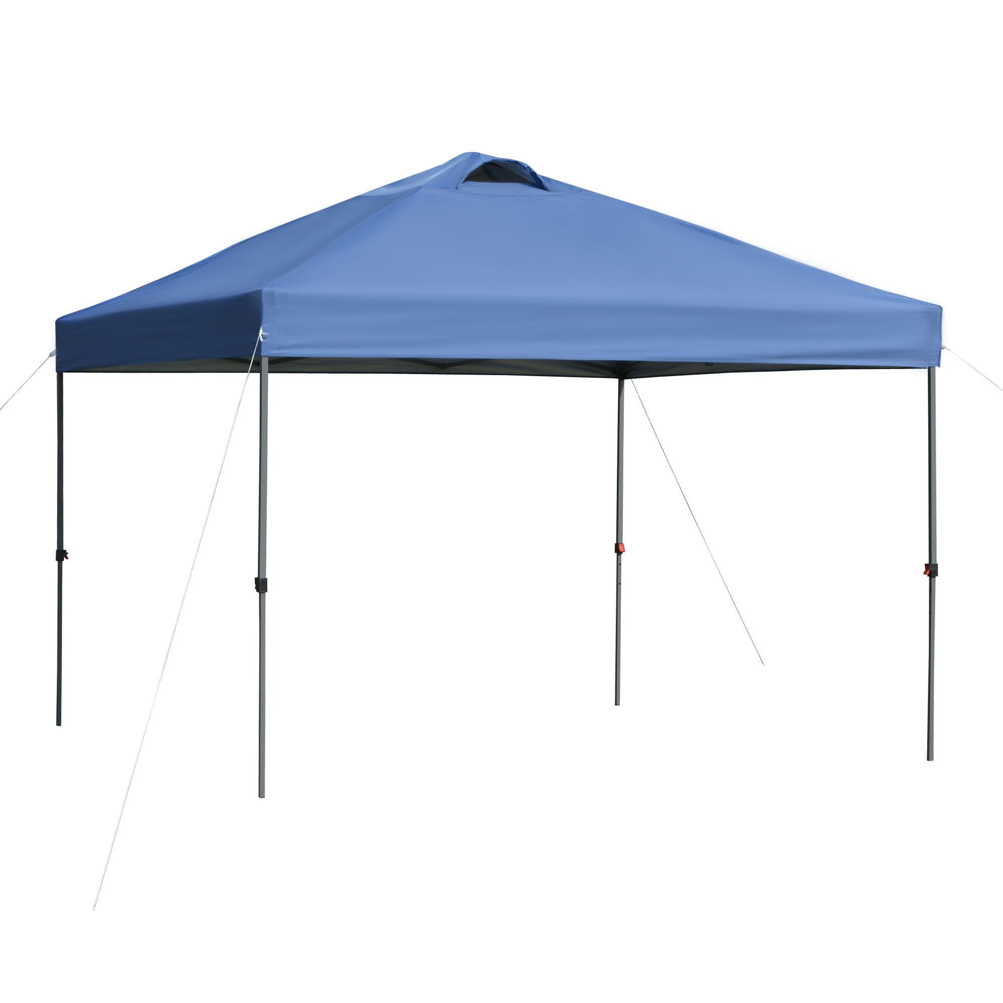 Pop in, pop up, and pop out with Outsunny. Outsunny's 10x10 pop up canopy offers swift superior shade with silver-coated Oxford fabric. Stop sunburns and stay comfortable across carnivals, cookoffs, catering, or any other outdoor party you can come up with. Made from strong steel and supported with ropes and stakes, firmly plant your plans. When it's time for clean up, teardown is just as easy as set up. Fold it down in the carrying bag, wheel it out, and you're ready for the next event.