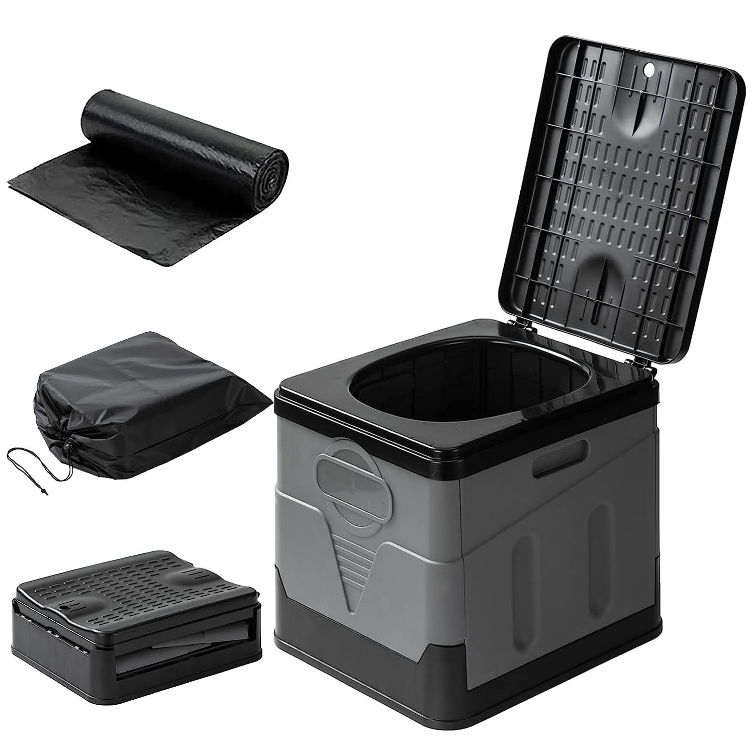 *Multiple Uses*:Our portable toilet can be used not only as a mobile toilet for outdoors,but also a portable seat with storage function,a trash can,a small stool,a storage box,an indoor toilet for the elderly and vomit bucket for pregnant women etc..