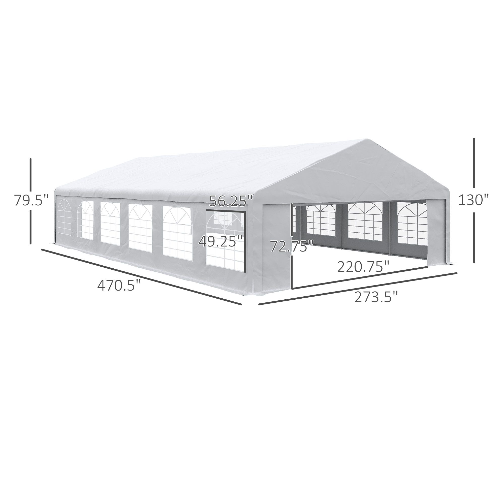 Outsunny's 23' x 39' carport and party tent can protect your project car and transform any outdoor area into a unique event space. Excellent for wedding receptions, graduation parties, or extra-large barbeques, it offers twelve stylish cathedral-esque windows. Excellent for small-to-medium cars, boats, furniture, and tools, it stops sun damage and sunburns alike. Made of a galvanized steel frame selected to withstand water and warping, Outsunny's canopy tent provides portable protection.