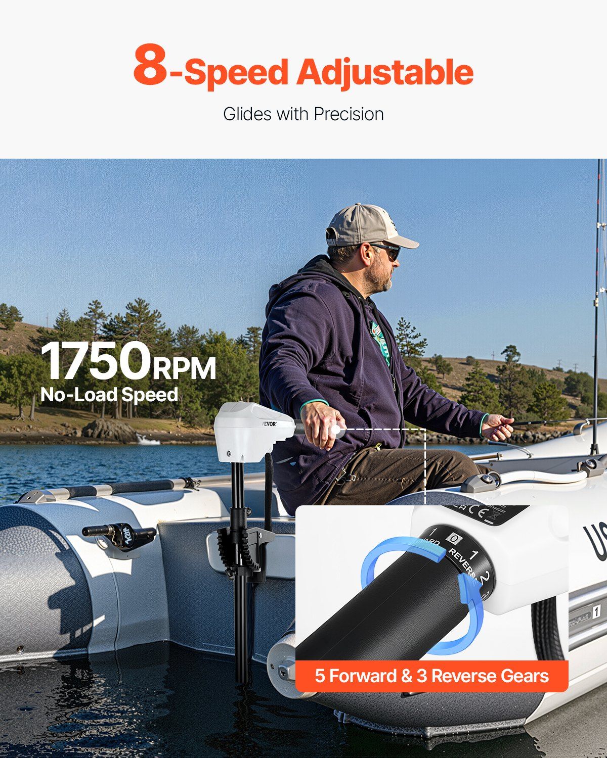 1.Powerful Thrust for Superior Performance: Our 12V manual trolling motor delivers 55lbs of thrust, providing exceptional power and efficiency for saltwater fishing. The high-quality motor structure ensures all-day operation without overheating, so you'll never have to worry about scaring the fish away