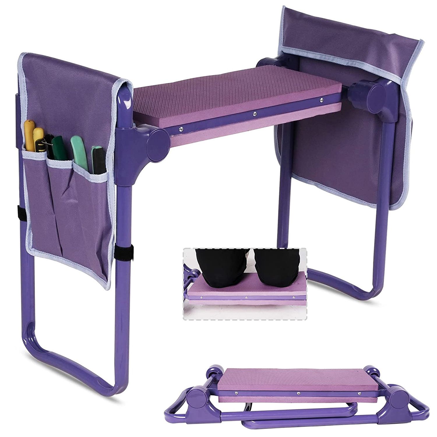 Widen Garden Kneeler and Seat Bench Folding Garden Workseat with EVA Foam Kneeling Pad and Dual Pouch
